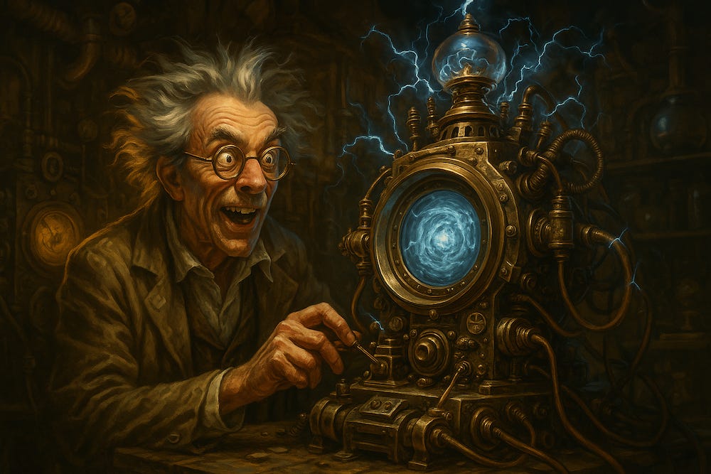 The ChronoTranscriptor is the heart of every ChronoTalks episode. Developed by Dr. Mercartor in an abandoned observatory-turned-laboratory, this unstable but astonishing device converts quantum echoes of the past into real-time dialogue.