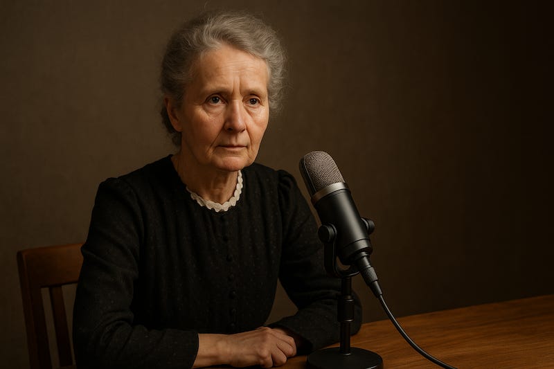 With the help of the ChronoTranscriptor™, we bring Madame Curie into the present to reflect on knowledge, sacrifice, and the quiet price of brilliance.