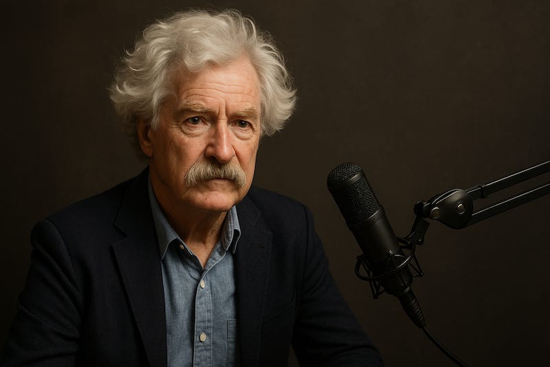 The author of The Adventures of Huckleberry Finn, Tom Sawyer, and a dozen other enduring classics, Twain wasn’t just a novelist—he was a sharp-tongued observer of hypocrisy, greed, and the absurdities of his time. With the help of the ChronoTranscriptor™, we’ve brought him forward from 1909 to 2025 to ask what he thinks of our absurdities.